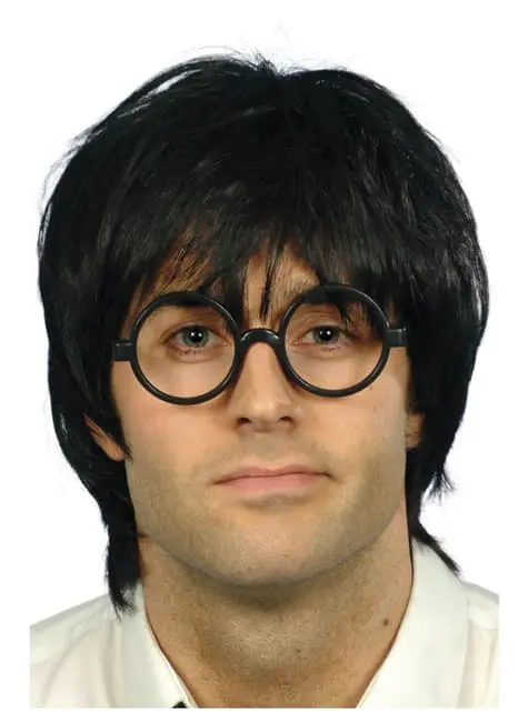 Beinhaltet eine braune PerĂĽcke und eine nicht wirklich dezente, runde Brille.
