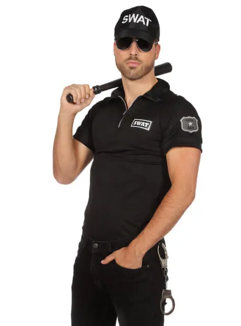 Nicht enthalten: Mütze, Brille, Schlagstock, Hose und Handschellen