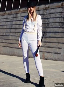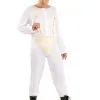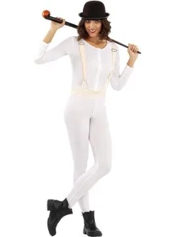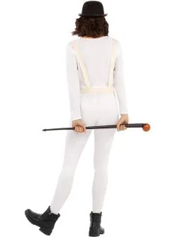 Und jetzt kannst du in diesem Uhrwerk Orange Kostüm für Damen selbst zu Alex DeLarge werden: ein weißer Ganzkörper-Overall mit Trägern.