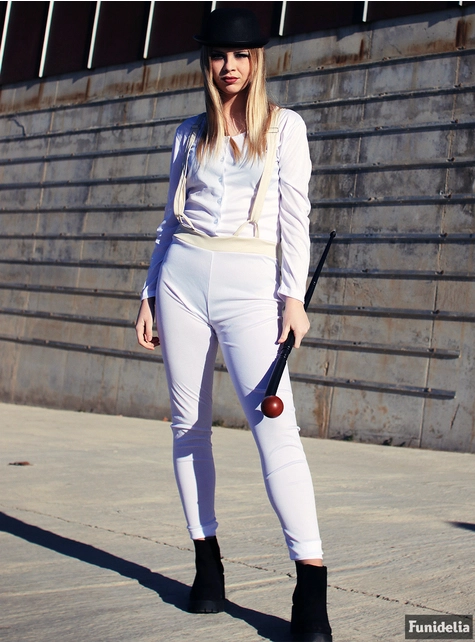 Diesem Film von Kubrick ist es gelungen, eine Ästhetik zu schaffen, die so charakteristisch ist, dass dieses Kostüm leicht zu erkennen ist. Schwarze Melone, Augenschminke und ein weißer Overall mit Trägern bilden das perfekte Uhrwerk Orange Kostüm.